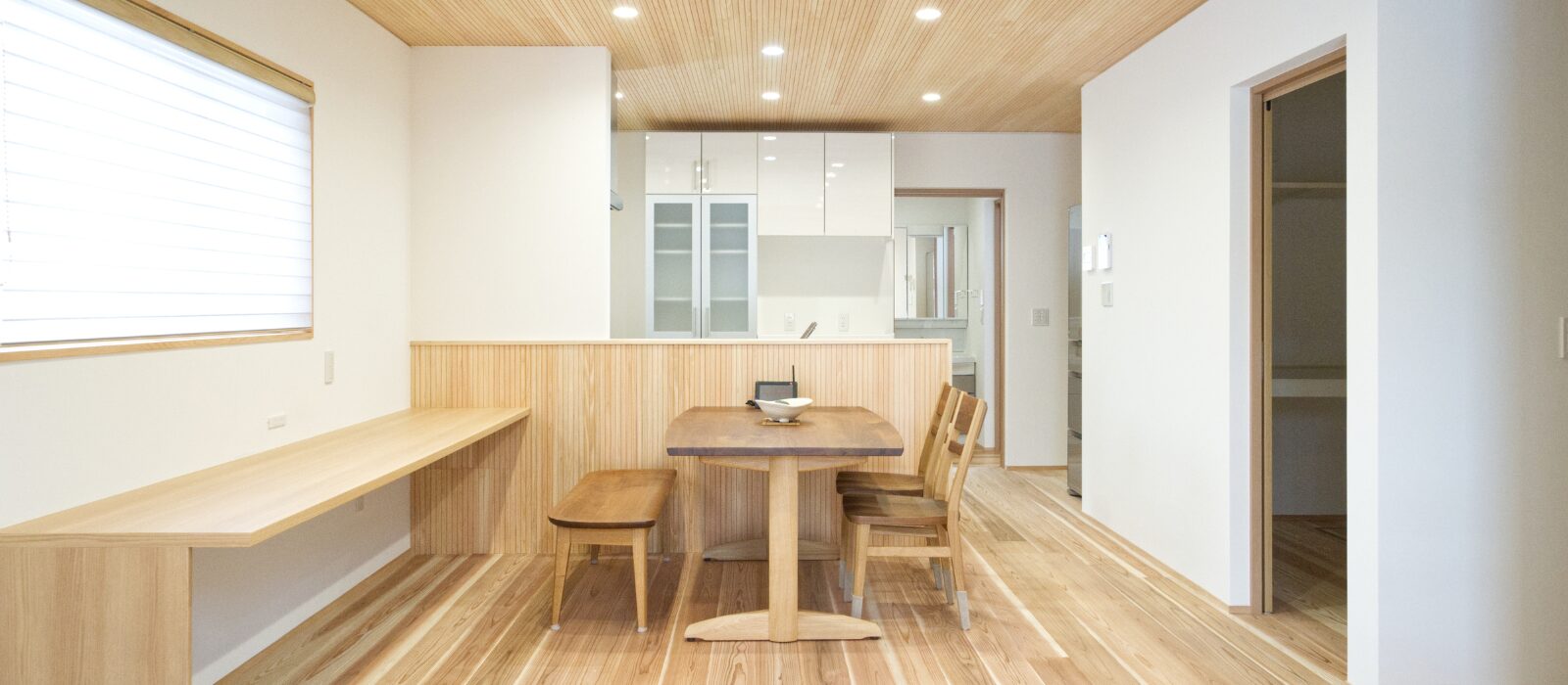 遊びに来てくれた友達や親戚が、寒い季節でも「裸足でも足が寒くないね、スリッパいらないね」と言ってくれて、言われるたびに改めて木の温もりの凄さを感じます。